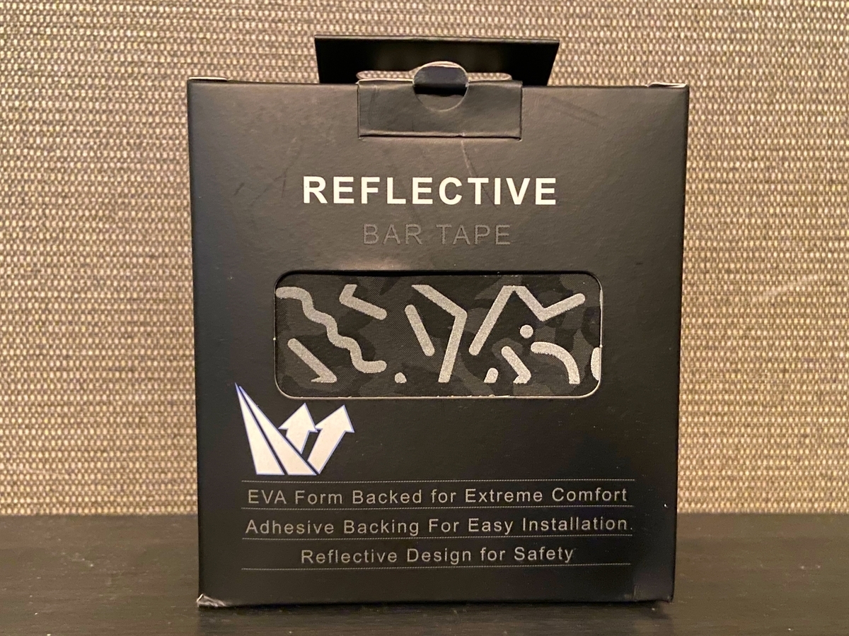 最初はその人が使っている全面反射素材のバーテープを検討していたのですが、(1) 滑りやすい素材である点、(2) 個人的にグッとくるデザインがない点、を考慮し、部分的に反射するものを選びました。