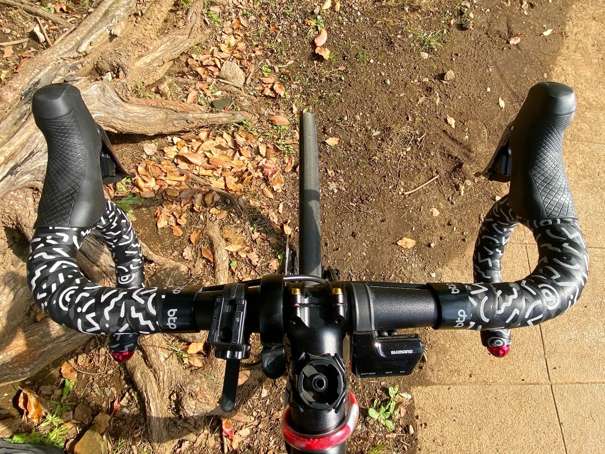 ちょうどブレーキ関連の調整でショップに行く用事があったため、ついでにバーテープの交換もお願いしました。そして、出来上がりを見ると、こんな感じ。
