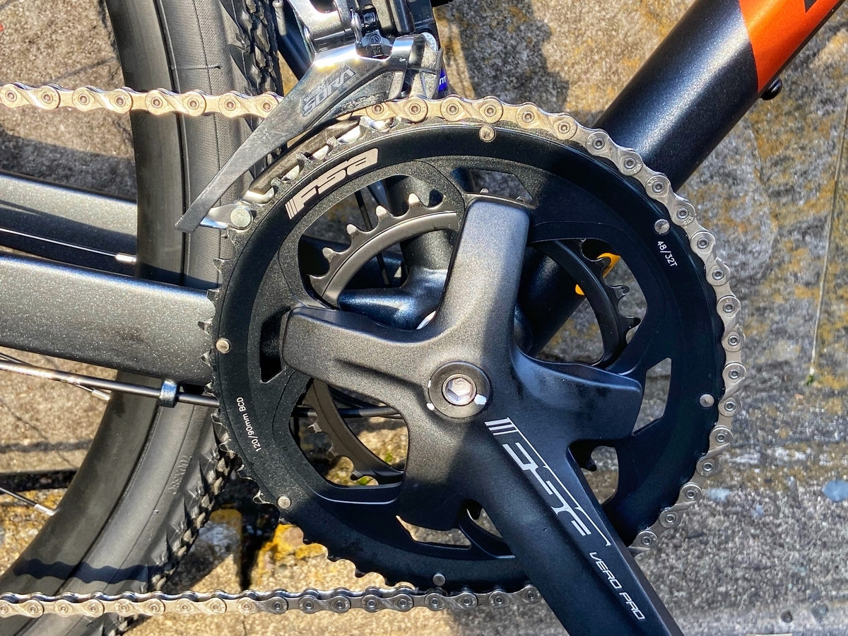 現時点のパーツ構成は、完成車から変更していないので、以下の通りです。当面はボトルケージを2個つけて、ペダルを替えるくらいで、乗ってみようと思います。あとは例によって、私にはクランクが長いのと、ハンドル幅が(グラベルロードとしても)広いので、そのあたりをいずれ改善したいです(クランク長を170mmから165mmに、ハンドル幅を420mmから380〜400mmに)*5