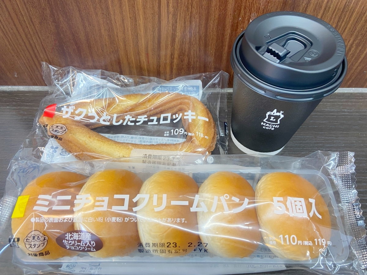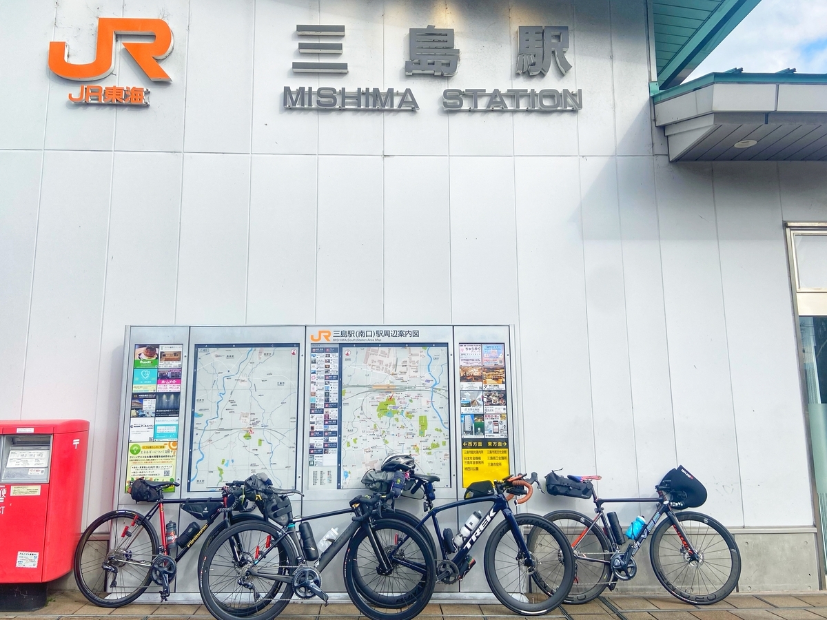 今回のスタート地点は、三島駅*1。駅前で輪行を解除したら、、、すぐには走り出さずに、駅前のコンビニでいきなり休憩(笑) コーヒーとチュロスはその場で摂取し、チョコクリームパンは背中のポケットへ。