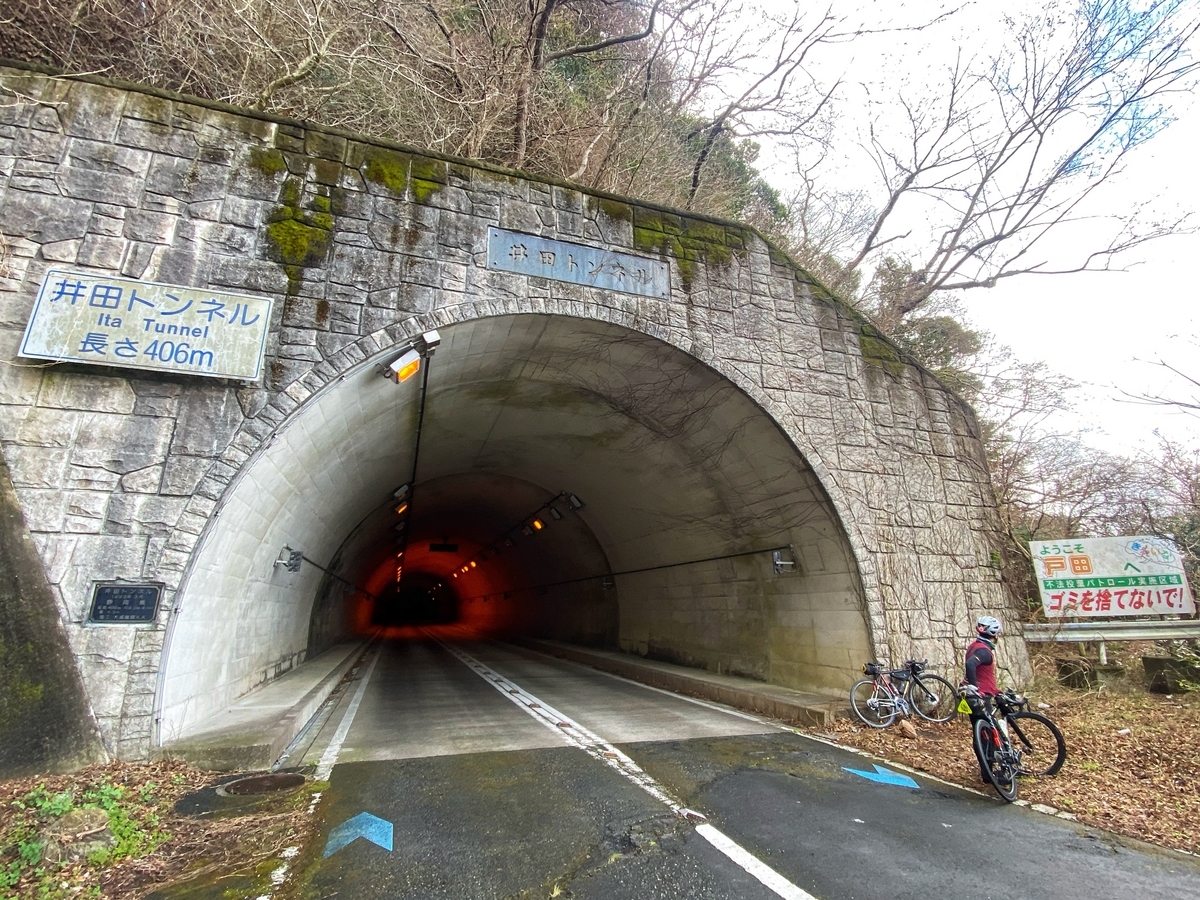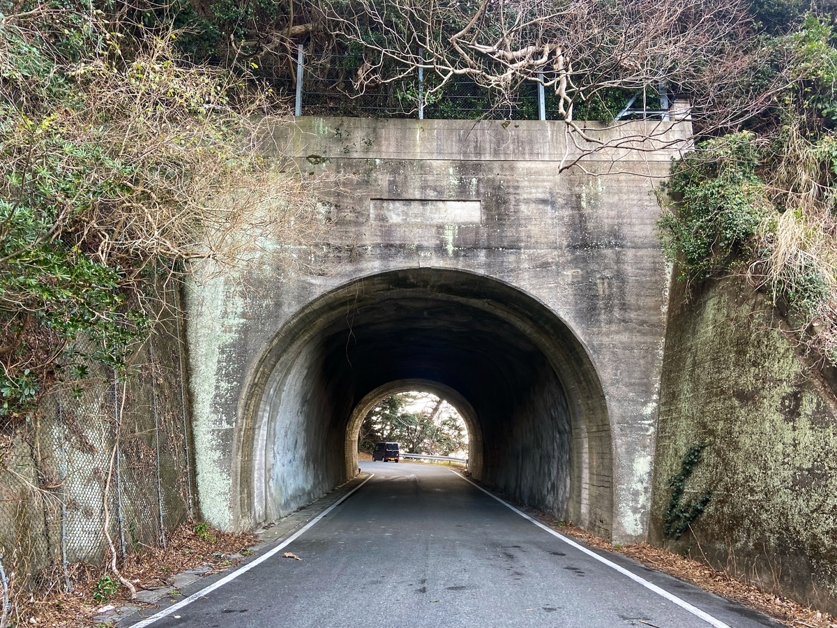 その後は、背中に入れたチョコクリームパンをモグモグしながら、西伊豆のアップダウンを淡々と進んでいきます*4。次第に「ヒルクライムは個々のペースで」という雰囲気になってきたので、後ろを待つ体をとりつつ、室岩洞トンネルの旧道に寄り道(笑)