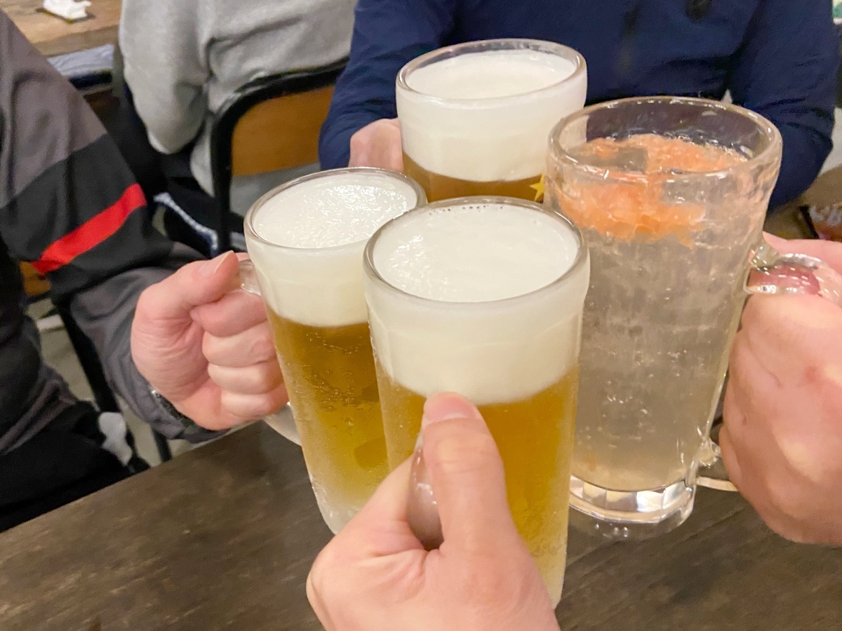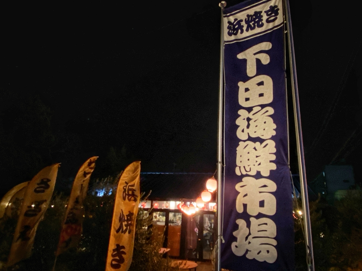 これは「湾岸ナイトライダーズあるある」ですが、全員がナイトライドに慣れている(というか、むしろ好きな)ので、「日没までに○○を」という計画を守る気が皆無(爆笑) 日が沈んでしまったので、石廊崎はスルーして、本日のゴール地点である下田に到着。ホテルにチェックインして、荷物と自転車を置いてから、たまたま見つけた下田海鮮市場文で打ち上げ。宿泊ありのライドは、最高ですね。