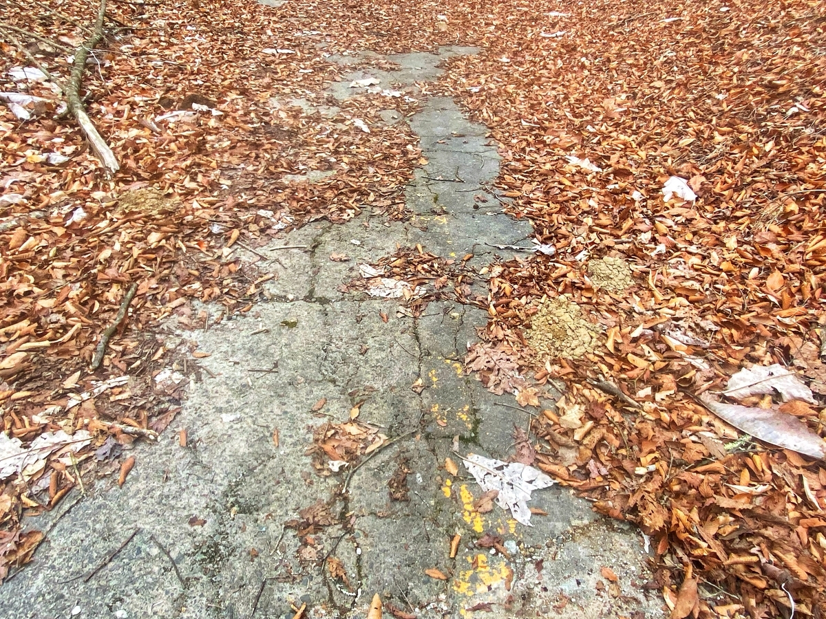ついでに、反対側(道志側)も探索してみましょう。こちら側の坑口は見つけられませんでしたが、部分的に存在する舗装と、微かに残るセンターラインの跡がグッときます。