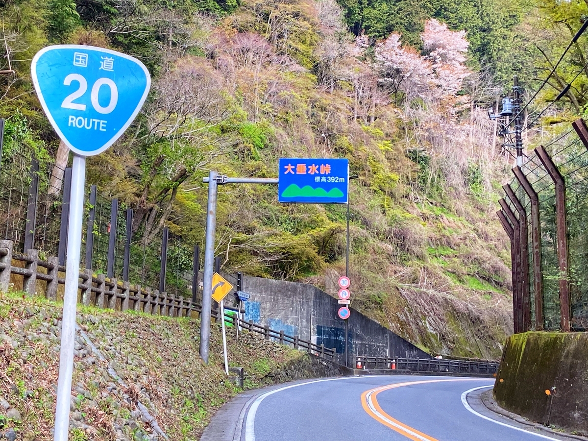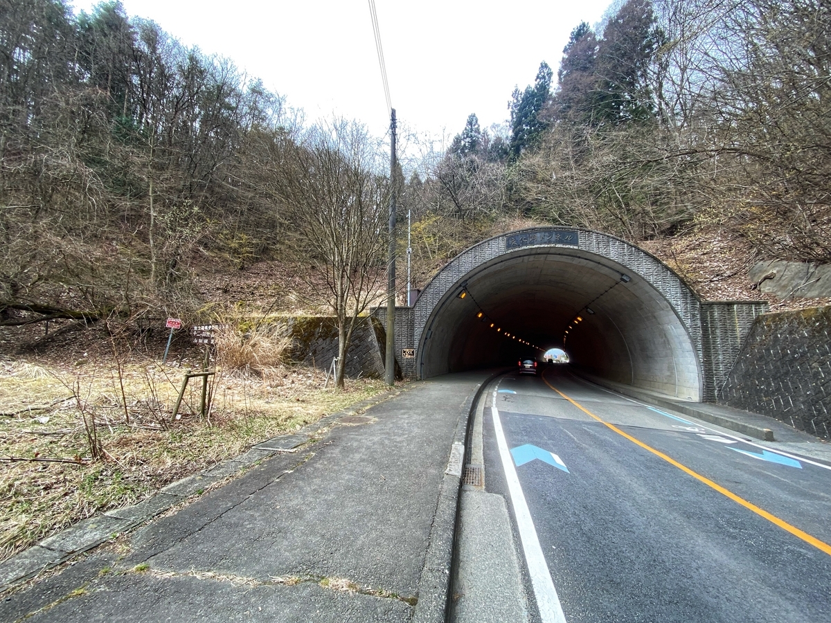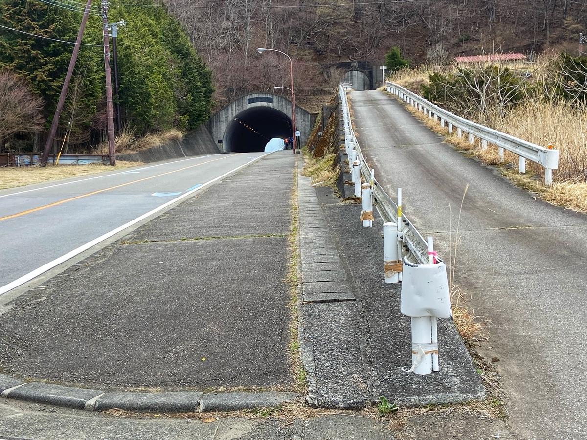 そして、富士吉田まで切り返したら、国道139号を大月方面に降っていきます。今回は途中で県道35号に入って、雛鶴峠を目指します。実は雛鶴峠に行くのは初めてなのですが、たまたま桜の時期だったこともあり、峠に向かう景色が綺麗でした。なお、「花より隧道」という性格なので、桜の写真はなし(笑) 峠の西側、ピークの直前にある分岐(以下)から旧道に入ります。