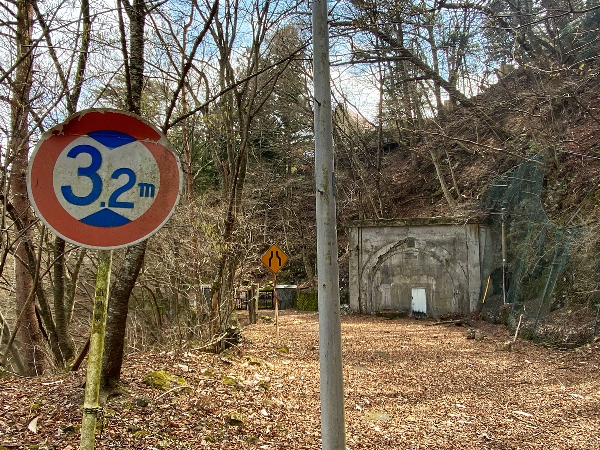 奥に進んでいくと、旧隧道があります。個人的に、すでに使われていない道路標識がとても好きです。