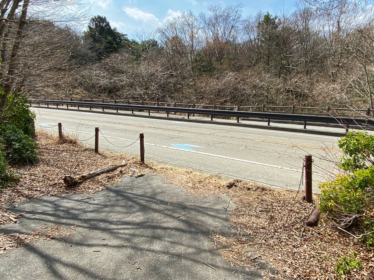 この青看板から旧道や廃道を感じられる人とは、お友達になれそうです(冗談) 甲州街道で東京に入るには大垂水峠を越えないといけませんが、その旧道の入口を見てみたかったのです*12。この地域の人達は不法投棄に強い危機感を持っている印象なので、詳しい場所は書きませんが、調べればすぐに分かるでしょう*13。下記の写真が旧甲州街道(明治新道)の入口です。それほどやる気のない感じの「全面通行止」看板ですし、この先に「危険ですので通行しないようにして下さい。尚、やむを得なく通行する場合は、十分注意してください。」(下線は引用者)という標識もあると聞きますが、、、道がだいぶ崩れているようですし、峠側の出口が私有地で通行できないので、この入口で引き返しましょう。