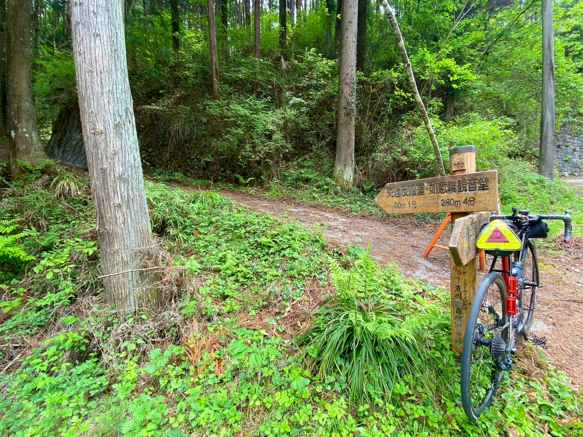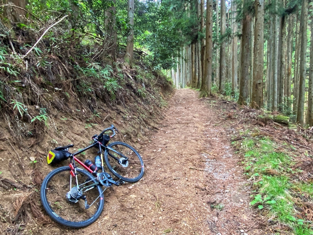 大達原という地域まで走ったら、国道を外れて、1.1kmほど舗装路を登ったあと、未舗装路へ。車両通行止めではないので、そのまま突撃(笑)