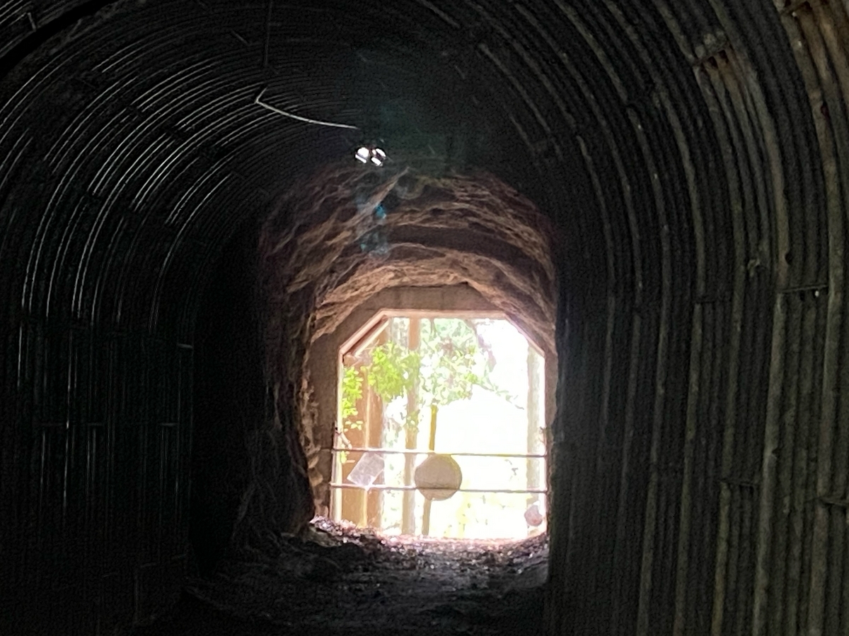 矢通反隧道に到着すると、残念ながら全面通行止めでした。。。現在は舗装された道路がすぐ脇を通っていますし、もう補修されることはないのかも知れませんね。。。*4 柵の手前から中を覗くと、奥の方が素掘りになっていることが分かります。