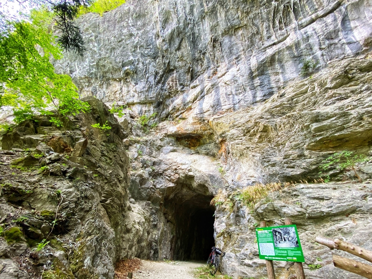 反対側から見ると、石灰岩の大きさに圧倒されます。なお、この隧道は少し分かりにくい場所にあるのですが、観光地化しようとしているのか(?)、観光客向けの新しい看板がありました。