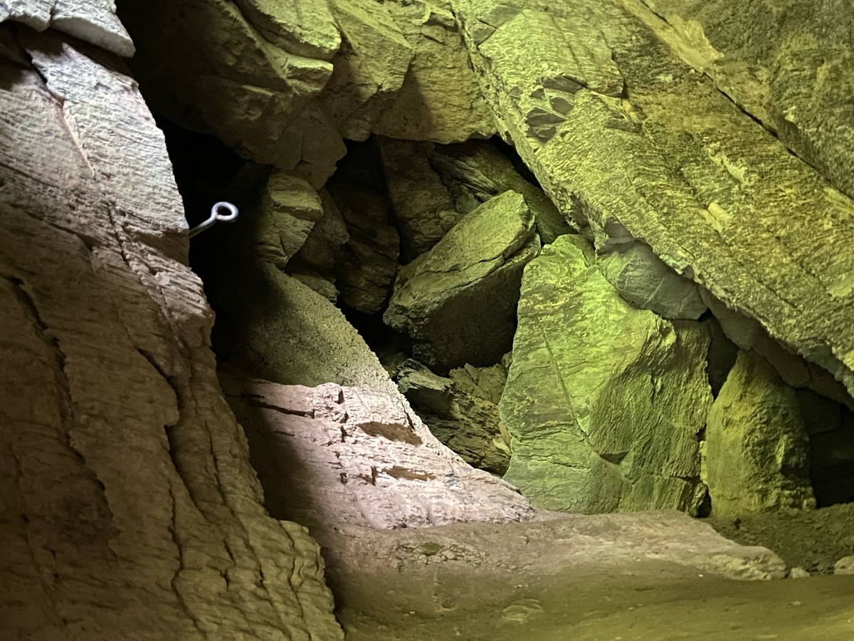 洞窟の中には入らず、すぐ近くの鍾乳洞へ。鍾乳洞に入るには装備も覚悟も足りないので、ここも入口から中を覗くだけにしますが、中から冷気が漂ってきました。