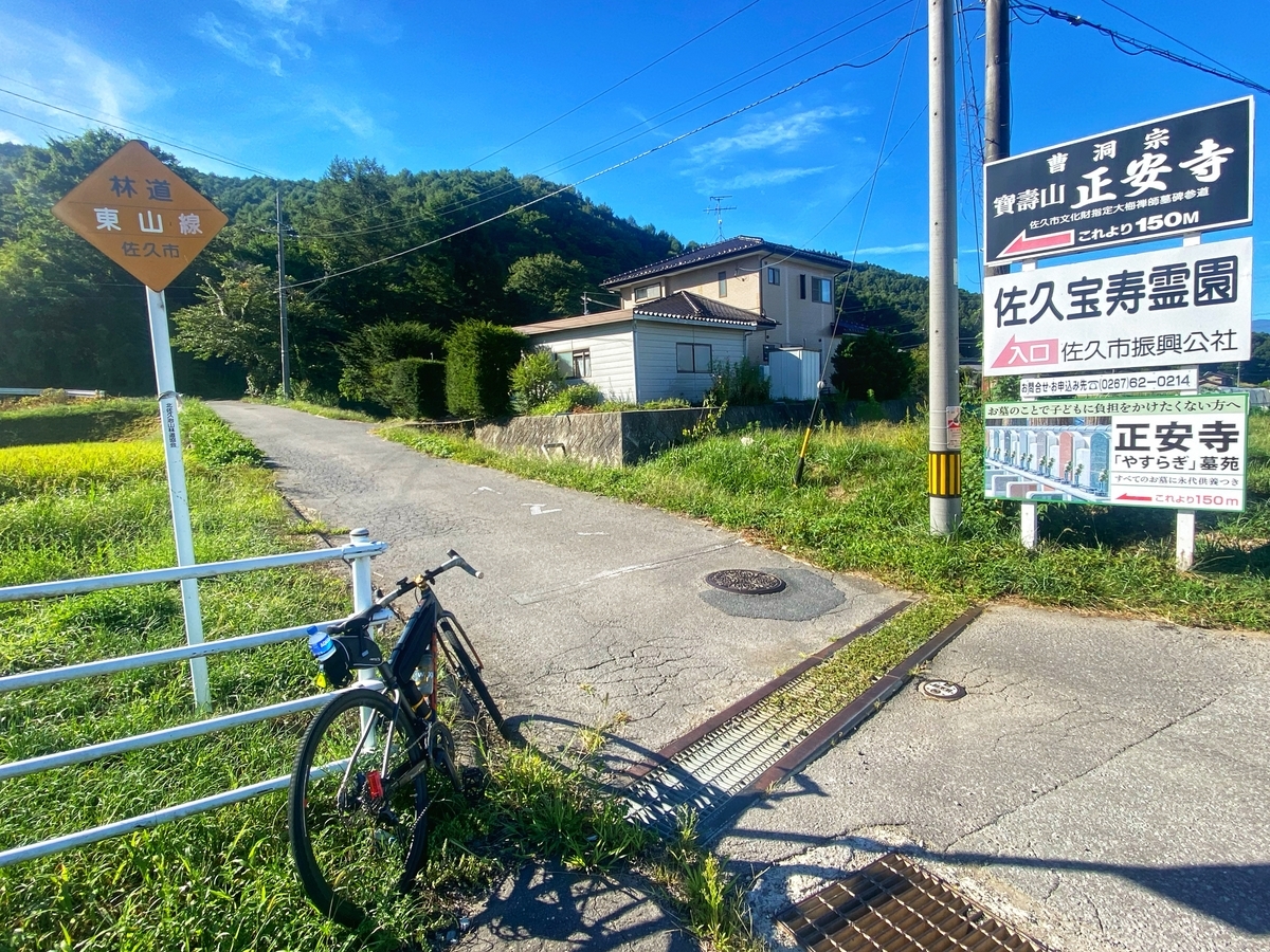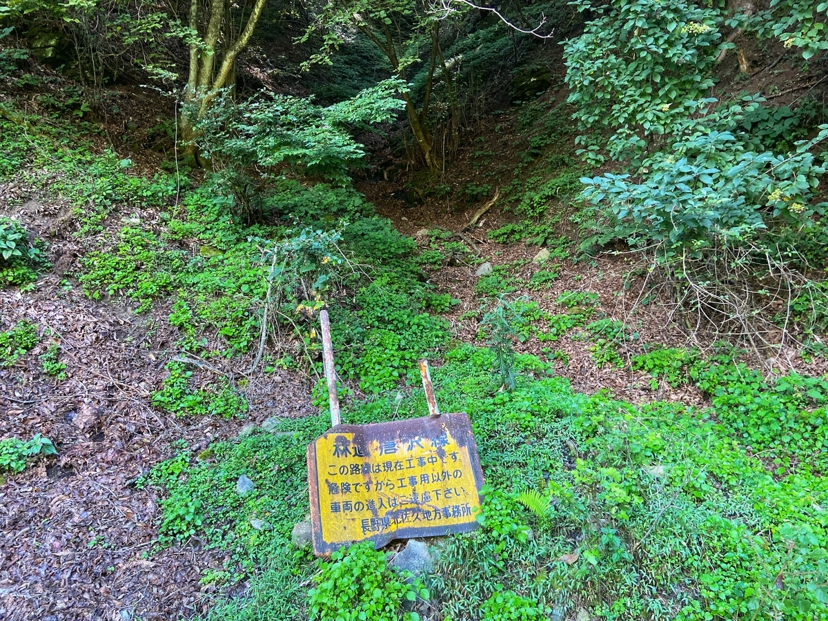 中込駅から約3km、県道120号沿いにある正安寺の脇から林道東山線に入ります。この林道は延長約19kmで、未舗装区間が18kmもあります。