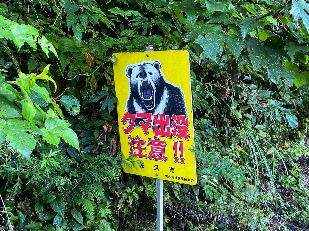 最初は、舗装路で一気に登ります。佐久市の熊出没注意の看板が妙にリアルで怖いです。。。(苦笑)