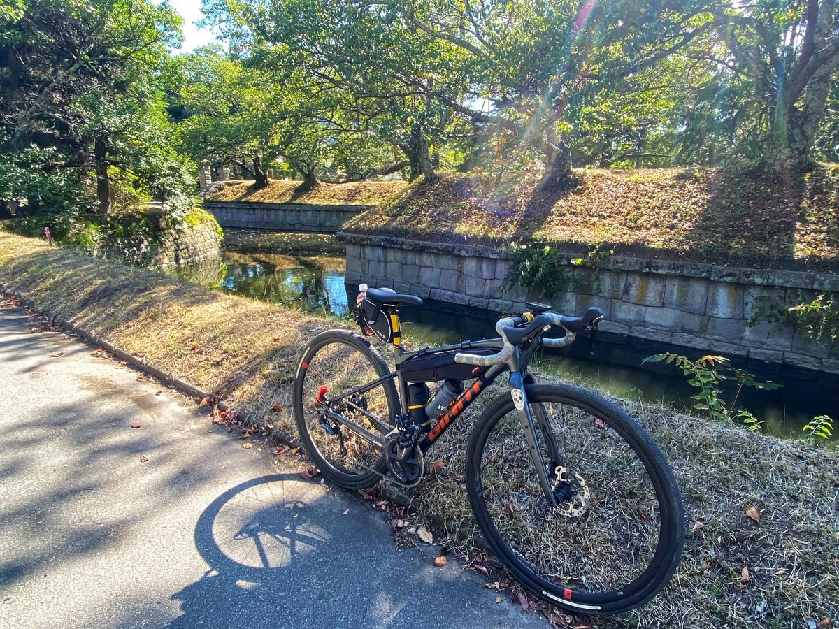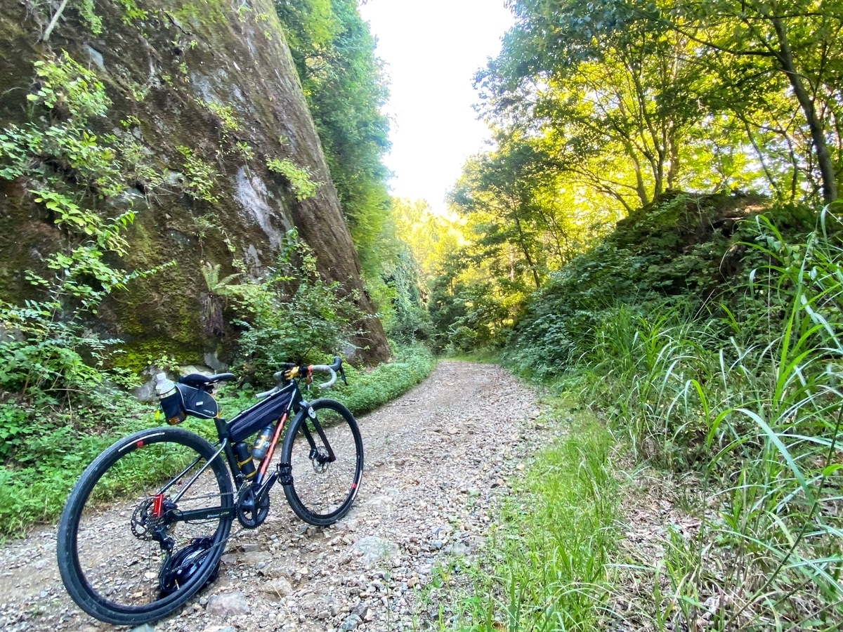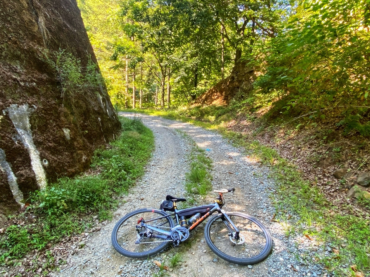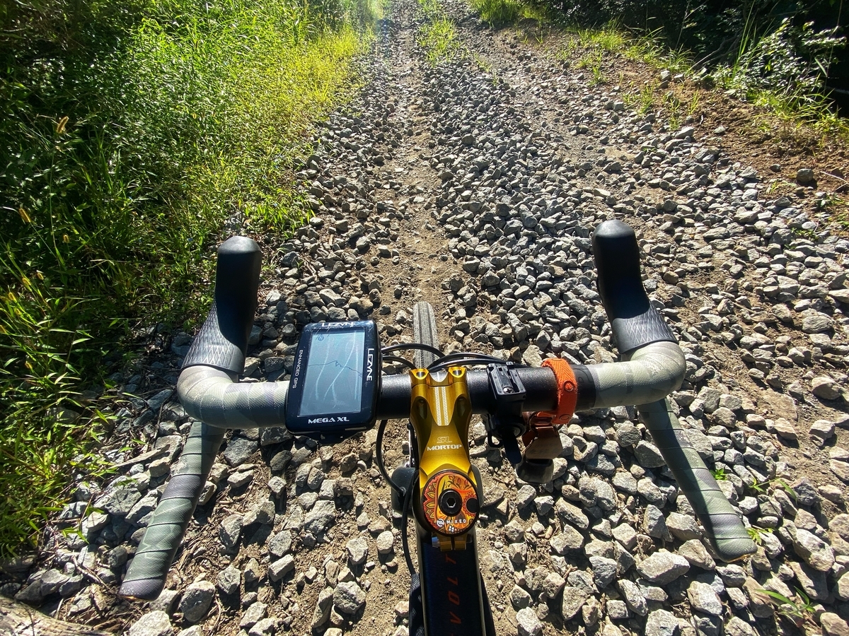 ところどころ、38cのタイヤには厳しい路面があるので、そのあたりは慎重にラインを選びます。個人的には、大きめの石が敷かれているところよりも、小さい砂利がフカフカのところ(見た目では少し分かりにくい)の方がタイヤを取られて怖かったです。フラペでなかったら、2〜3回落車していたかも知れません(汗)