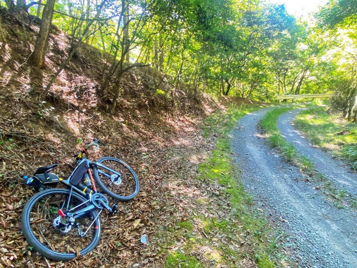 林道田口十石峠線は、林道東山線よりもアップダウンが少なくて、路面も綺麗なので、非常に走りやすいです。グラベルロード乗りの皆さんがオススメしていたのも納得。また、この日は、1台のオートバイとすれ違っただけで、交通量が少なかったのもラッキー。