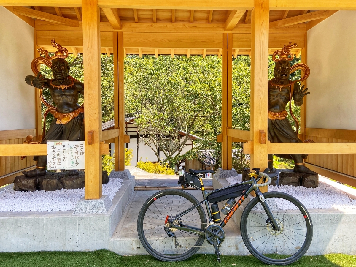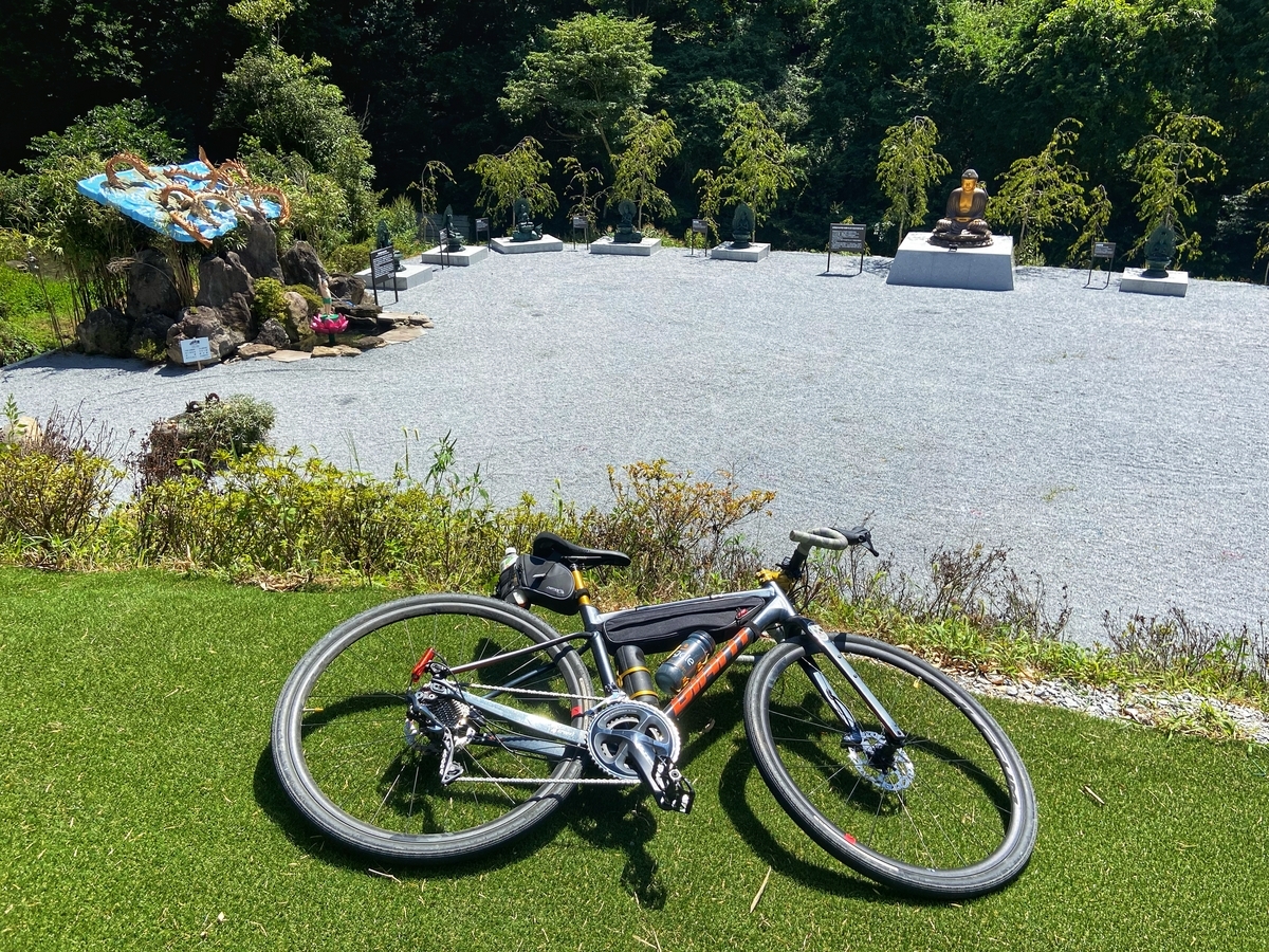 第1工区を通行できる場合は、さらにその先の林道茂来線に向かうのが定番のようですが、今回は通行止めだったのと、RDが不調だったこともあり、グラベル走行はここまで*6。素直に、県道108号で国道299号まで下ります。その途中で、謎の仏像のテーマパーク(?)なるものを見かけました。これは一体何なのでしょう??
