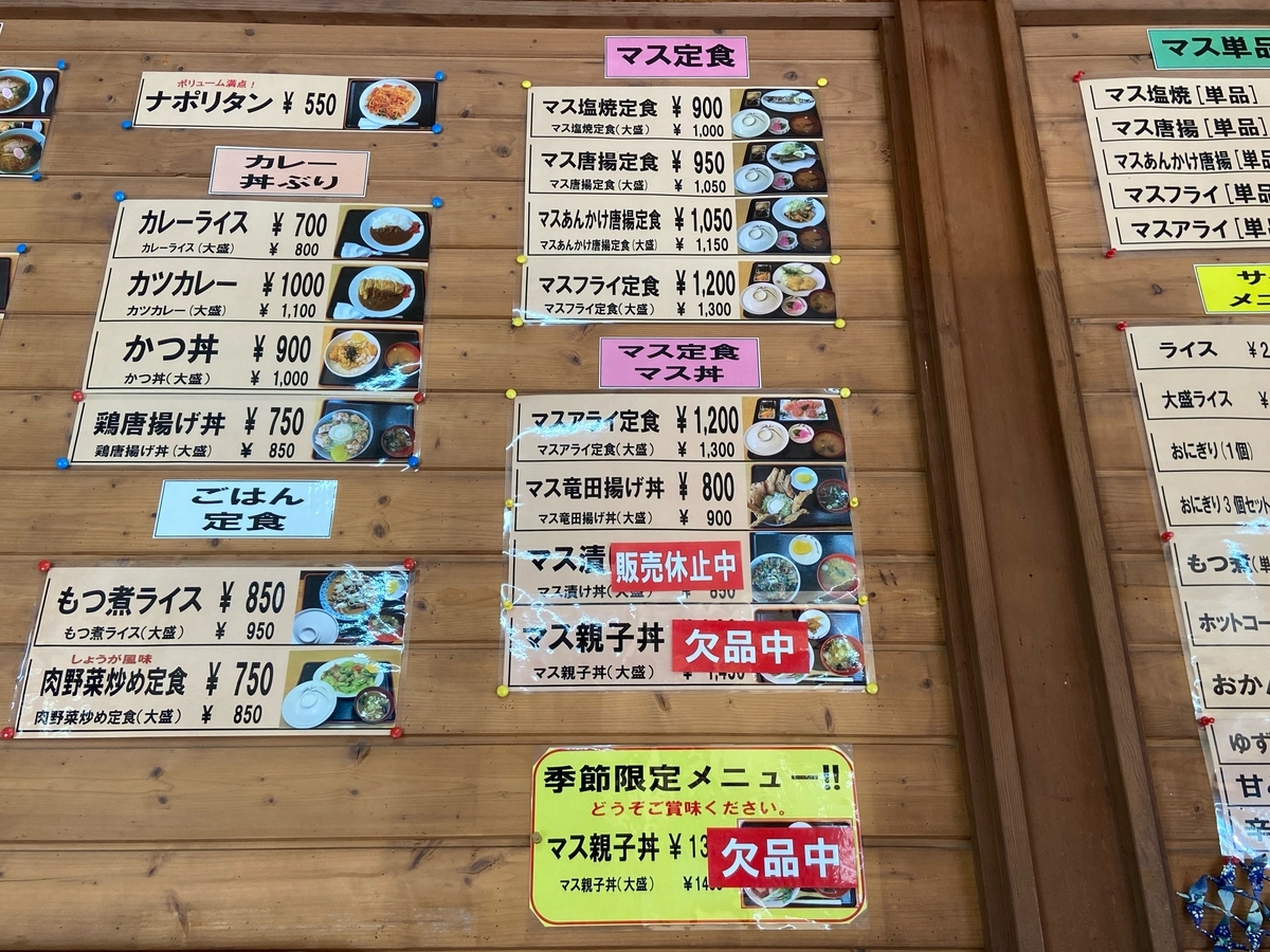 マス釣場に来たのは、釣りをするためではありません。食堂で、マスを食べるためです(笑) この時期は、マス親子丼(通称・痛風丼)が有名ですが、残念ながら欠品中。。。