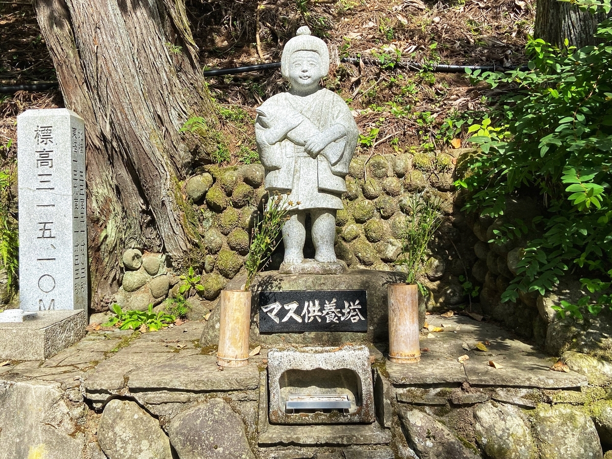 お腹いっぱいになったら、いま来た道を引き返します*6。マスをしこたま食べたあとに見る、マス供養塔。。。